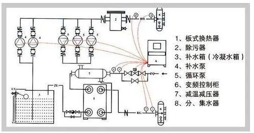 可拆卸板式換熱器是由許多沖壓有波紋薄板按一定間隔,四周通過墊片密封,并用框架和壓緊螺旋重疊壓緊而成,板片和墊片的四個角孔形成了流體的分配管和匯集管,同時又合理地將冷熱流體分開,使其分別在每塊板片兩側的流道中流動,通過板片進行熱交換。